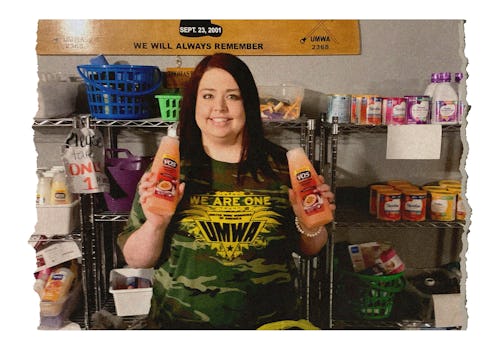 Dusk had just fallen on a cool March evening in the sleepy rural mining town of Brookwood, Alabama, and Haeden Wright had her hands full. She was simultaneously unpacking a bag of donated toiletries and giving an interview to a pair of German trade unionists, while keeping an eye on her oldest daughter, 8-year-old Averi, who sat absorbed in her Roblox game nearby. A volunteer and I rifled through Dollar General bags, stocking the shelves with bottles of pink V05 shampoo under the intense gaze of John Lewis, iconic leader of the United Mine Workers of America, whose portrait hung beside grainy black-and-white photos of coal miners past. A few of the overhead light bulbs had burned out, and the strike pantry — which had been operating out of a local union hall for nearly two years — was filling up with shadows as the sun set.