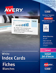 Avery Printable 3″ x 5″ Cards, 150 Blank Index Cards — Great for Recipe Cards and Flashcards (5388) , White