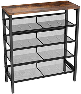 MIERES 5-Tier Industrial Shoe Rack, Storage Cabinet with 4 Metal Mesh Shelves Space Saving, Perfect for Entryway, Hallway, Closet, Bedr...