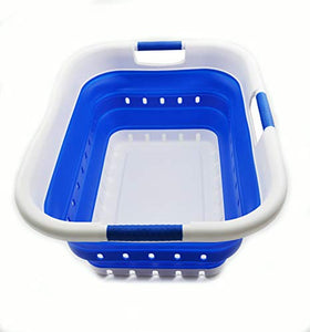 SAMMART Collapsible 3 Handled Plastic Laundry Basket – Foldable Pop Up Storage Container/Organizer – Portable Washing Tub – Space Savi...