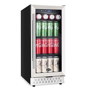 15 Inch Beverage Refrigerator Cooler Under Counter, 130 Can Beverage Fridge Built-in or Freestanding with Glass Door for Soda Beer Wine ...