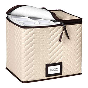 Champagne Flute Storage Box Case – Organizer Chest Holds 12 Stemware Glasses – Durable Microfiber Container Bin with Dividers –...
