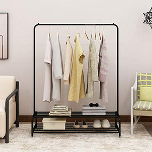 BOFENG Garment Rack Industrial Free-Standing Clothes Rack with Top Rod and 2 Tier Lower Storage Shelf – Black