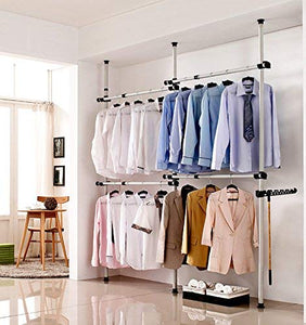 Garment Rack, Portable Indoor Garment Hanger Tools Heavy-Duty Adjustable DIY Coat Hanger Clothes Wardrobe 3 Poles 4 Bars Home Hanging R...